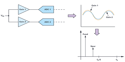 增加的采樣率提供了這些應(yīng)用程序的更多的帶寬,但  允許 對于 更容易 頻率 規(guī)劃  減少  的是通常在ADC輸入中使用的抗混疊濾波器的復(fù)雜性和成本。隨著 所有的這些 好處, 一個(gè) 具有  奇跡什么  價(jià)格 我要付錢?” 雖然交錯(cuò)的ADC提供更高的 帶寬  其他 不錯(cuò)的 收益, 一些 挑戰(zhàn)也在這種實(shí)現(xiàn)進(jìn)入圖片。