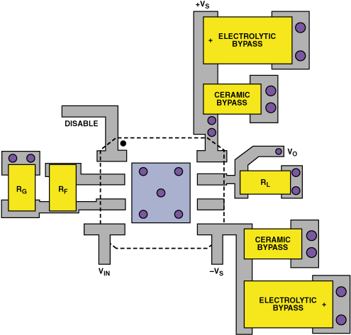 對(duì)于高速運(yùn)算放大器和任何其他高速電路,繞過(guò)放大器的電源端子以最小化噪聲是PCB設(shè)計(jì)過(guò)程的一個(gè)關(guān)鍵方面。有兩種常用的繞過(guò)高速運(yùn)算放大器的配置。