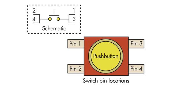 盡管現(xiàn)代組件已變得萬無一失,但研究PCB設計中計劃的組件以很大程度地減小對端板構建的影響仍然很重要。有些組件的包裝細節(jié)不明顯。盡管許多IC和分立元件都有標準封裝,但某些封裝具有特殊的屬性,使它們容易受到焊接錯誤和其他組裝錯誤的影響,例如非標準的引腳焊盤幾何形狀或分配。例如,在圖5中,瞬時按鈕開關乍一看將使針腳1和2短路在一起,而針腳3和4基于每對針腳的接近程度短路。但是數(shù)據(jù)表中的器件原理圖表明實際上已連接了其他引腳。